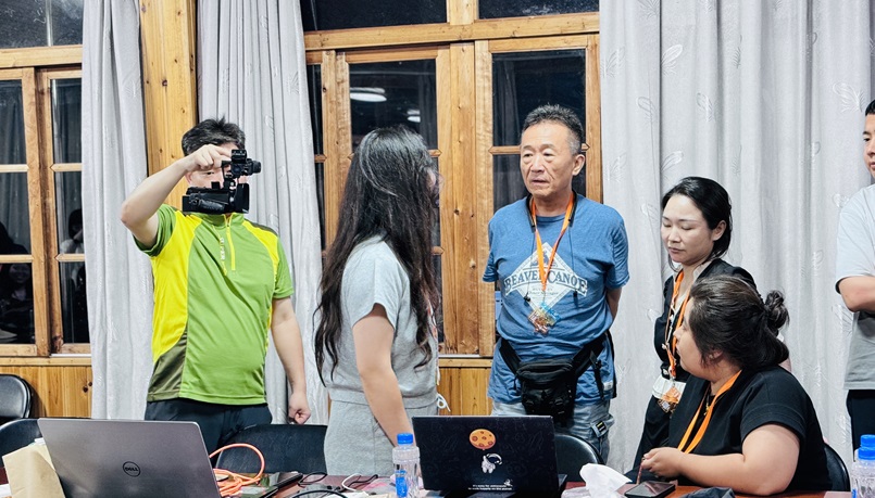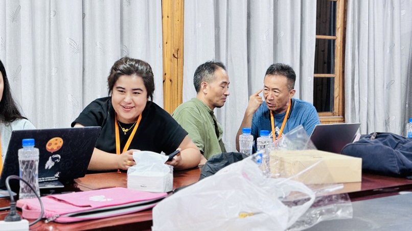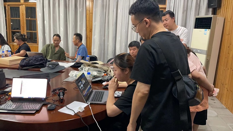 自19日以来,村里使用频率激增的地方就是……村委办公楼的会议室!这里不仅是下午学习讨论的教室,还是晚饭后挑灯夜战的剪辑室,更是最后观看实训成果的放映室!